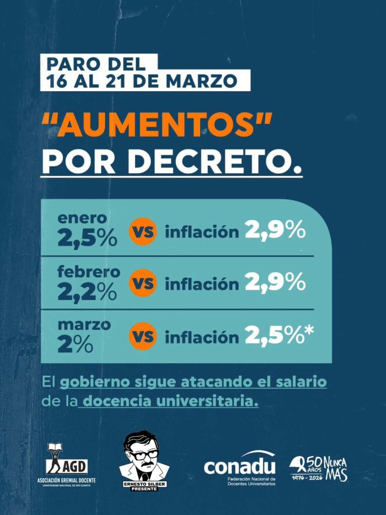 Paramos del 16 al 21 de marzo: No es solo un reclamo salarial, es una DEUDA. Porque el financiamiento universitario es ley.