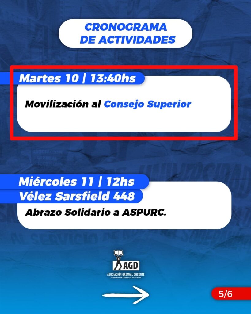 La Asamblea Docente de AGD-UNRC resolvió por unanimidad, un Paro total sin asistencia a los lugares de trabajo, del 2 al 13 de marzo en reclamo por el cumplimiento efectivo de la Ley de Financiamiento Universitario. Durante este período, el