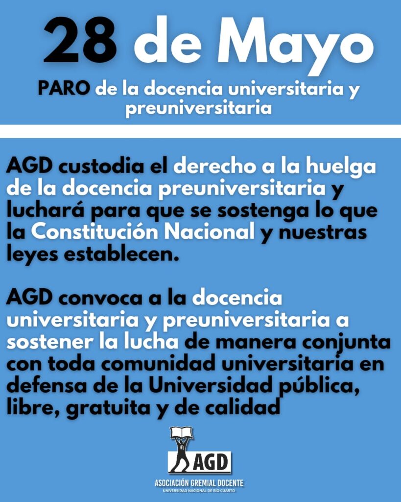 AGD convoca a la docencia universitaria y preuniversitaria a sostener la lucha de manera conjunta con toda comunidad universitaria en defensa de la Universidad pública, libre, gratuita y de calidad.