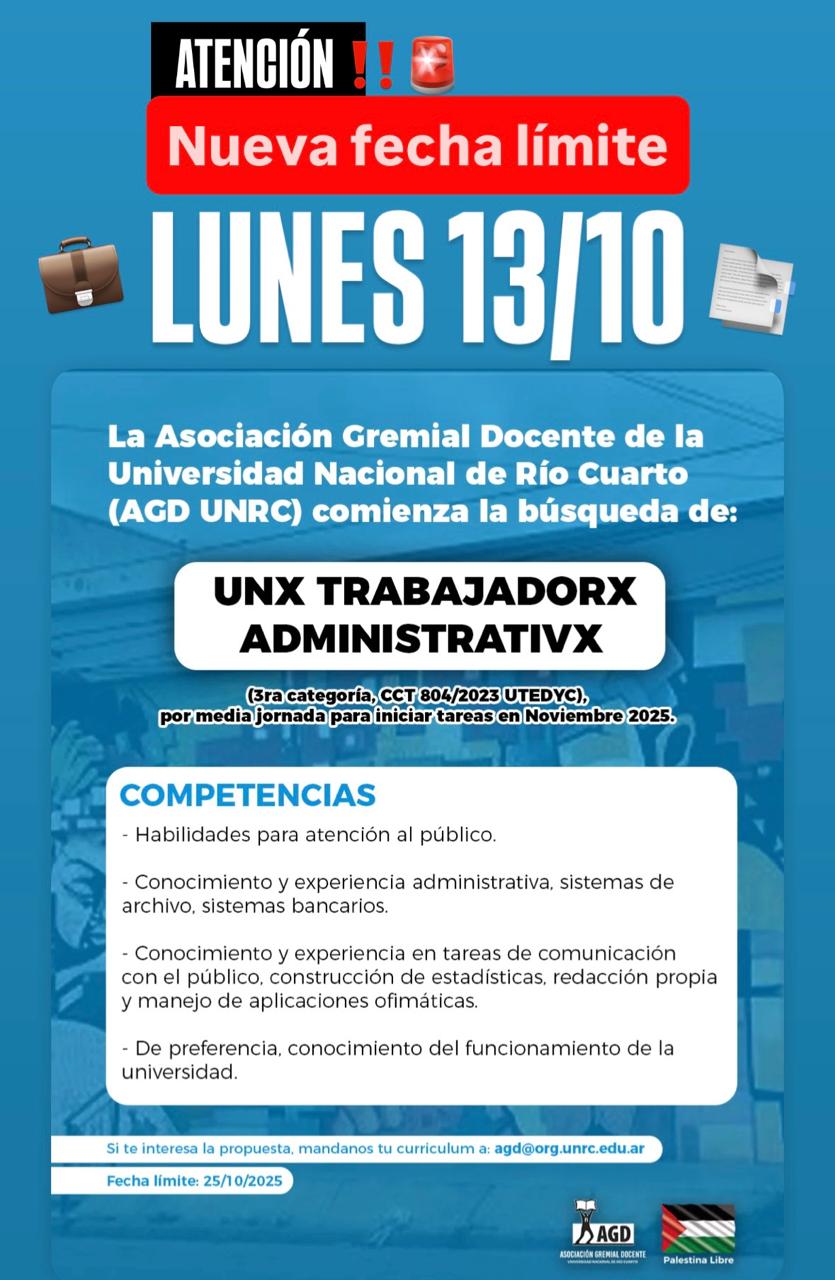 Cierre de la convocatoria trabajadorx administrativx AGD 13/10