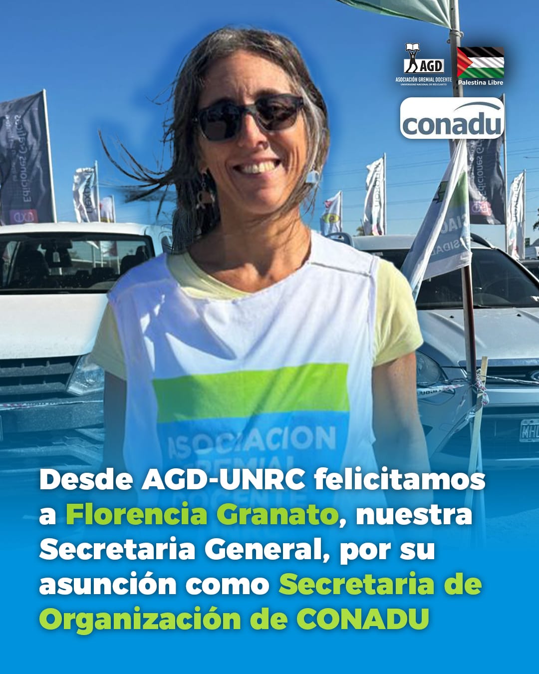 A nuestra Secretaria General Florencia Granato: Quienes integramos AGD-UNRC expresamos nuestro orgullo y felicitaciones por su asunción como Secretaria de Organización de CONADU .