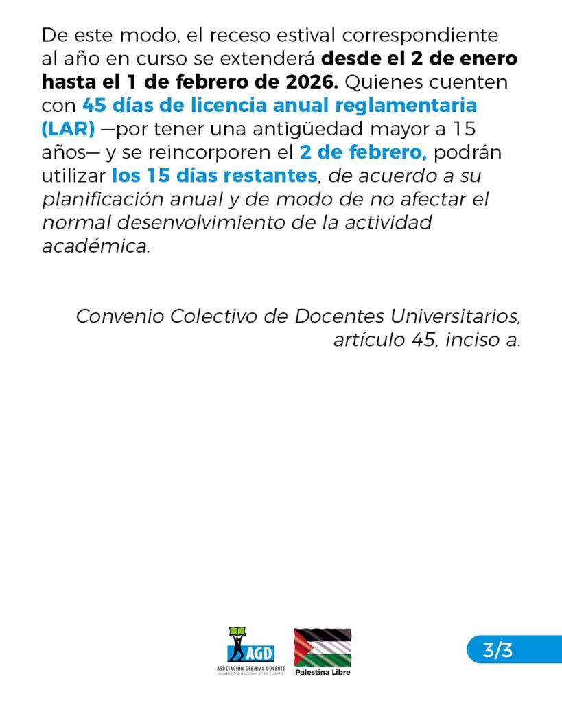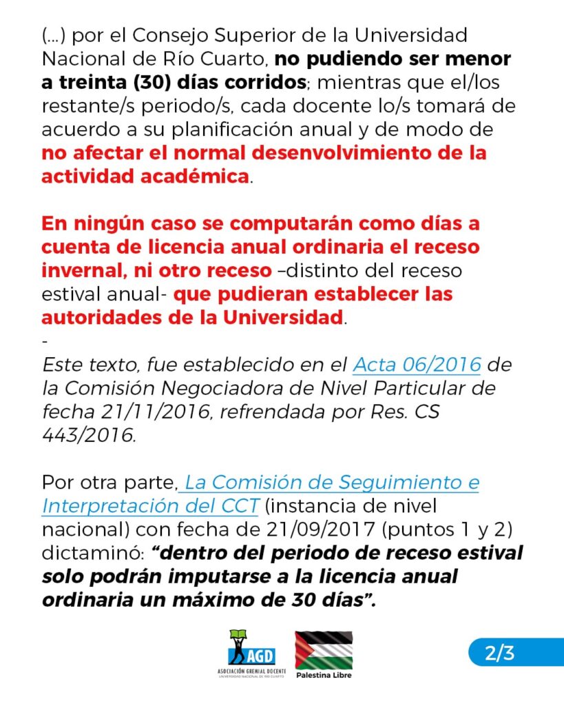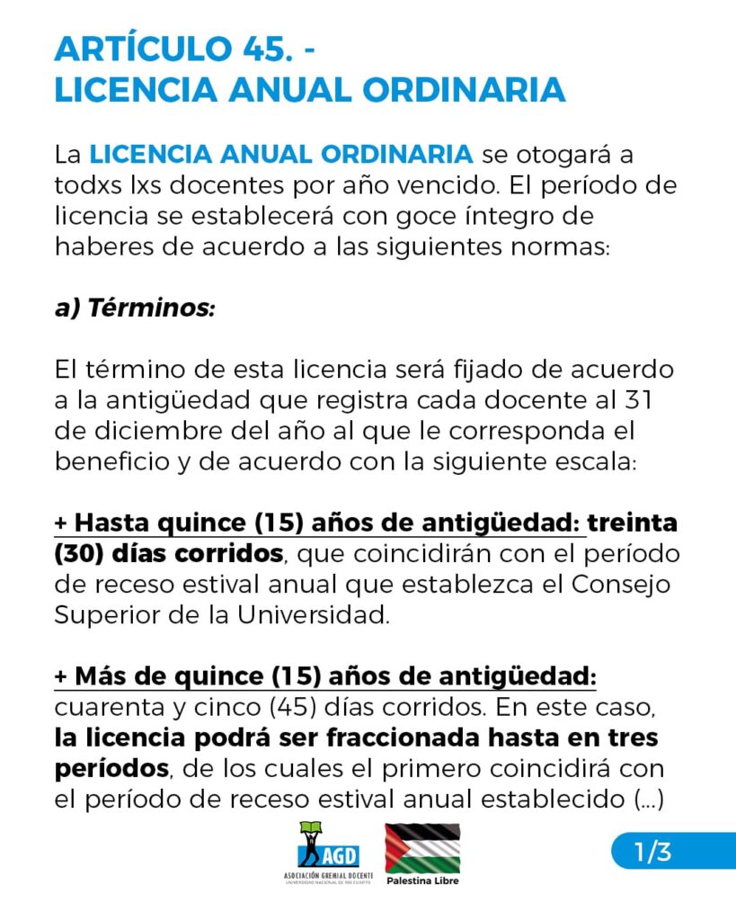 Términos y condiciones de la licencia anual ordinaria, según el Artículo 45 del Convenio Colectivo de Docentes Universitarios inciso A.