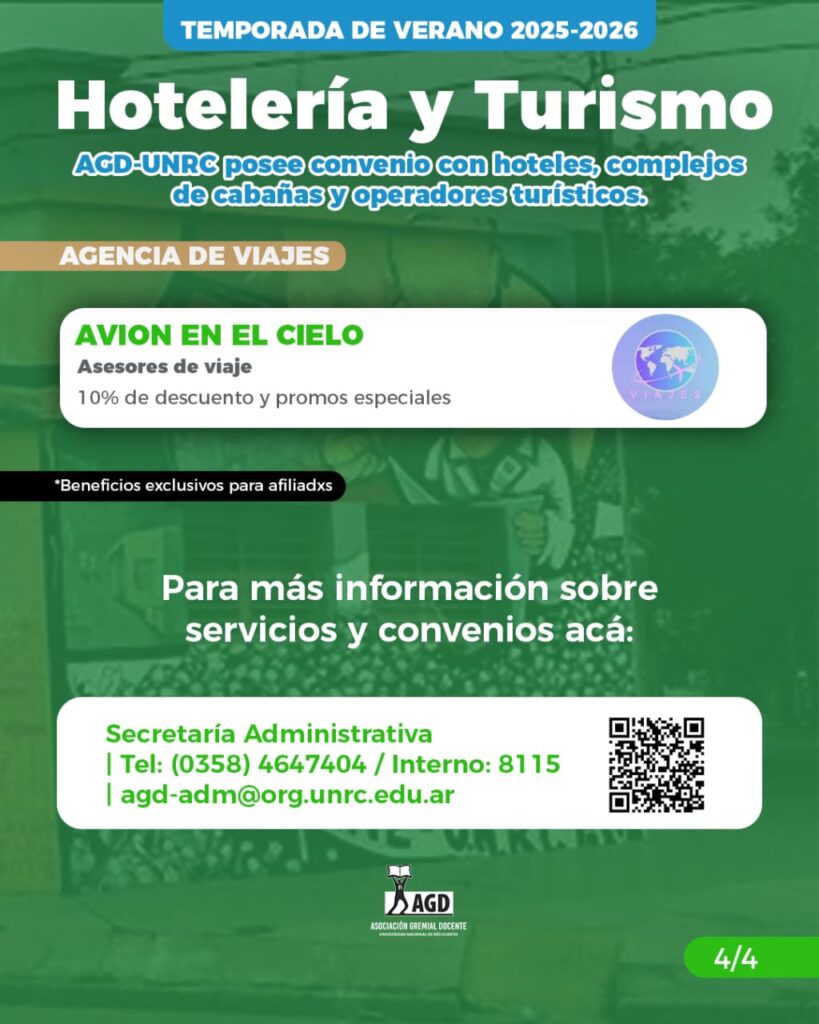 ⛰️🧳✈️ ¡Turismo y Hotelería con beneficios para afiliadxs de AGD-UNRC!