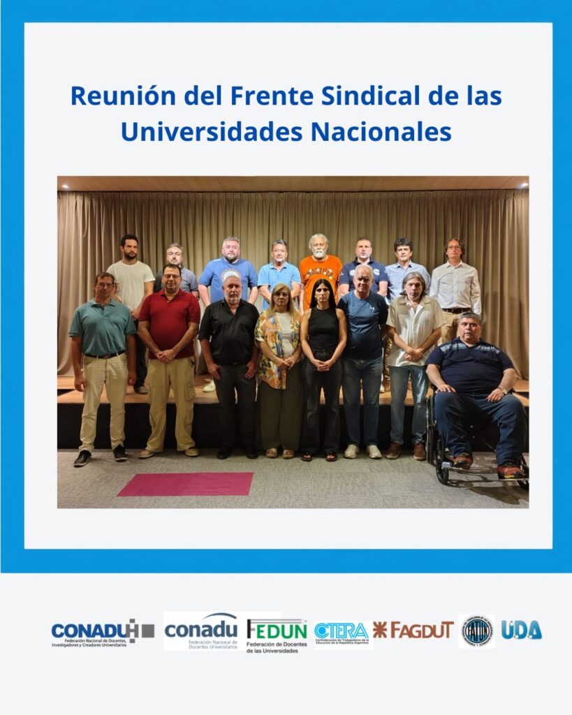 El Frente Sindical de las Universidades Nacionales se reunió hoy en la CONADU para coordinar y construir una posición común de cara al ciclo lectivo que comienza y a la necesidad de implementación urgente de la Ley de Financiamiento Universitario.