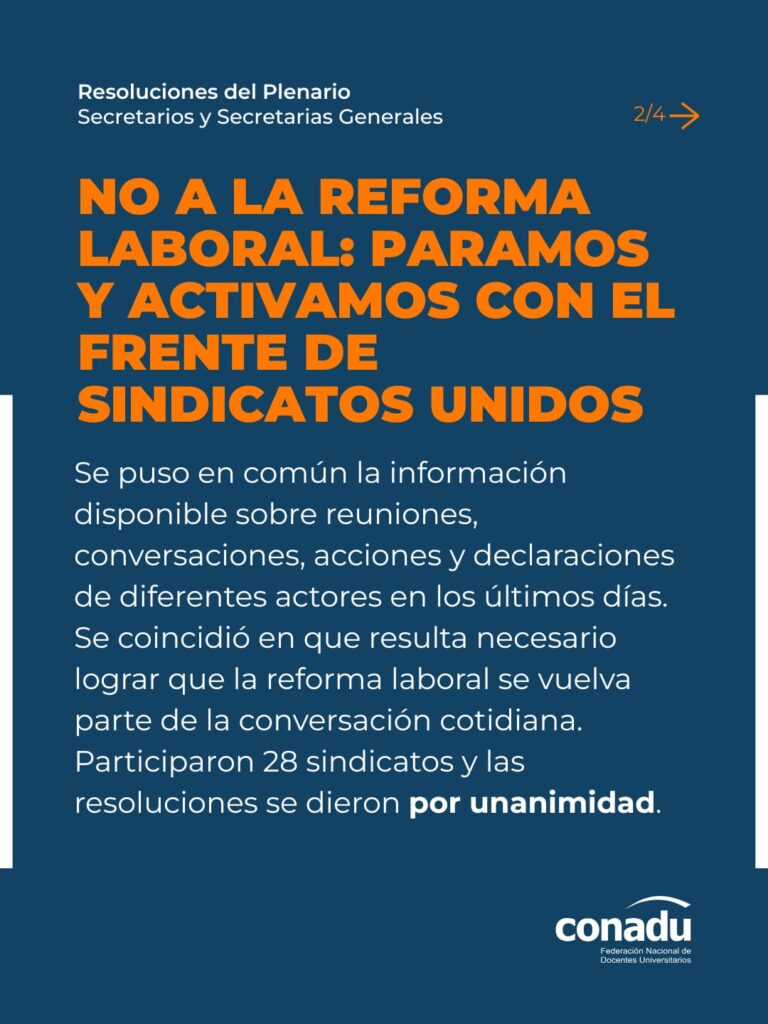Compartimos las resoluciones del Plenario de Secretarixs Generales de CONADU reunido el día martes 17 de febrero.
