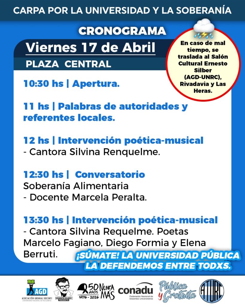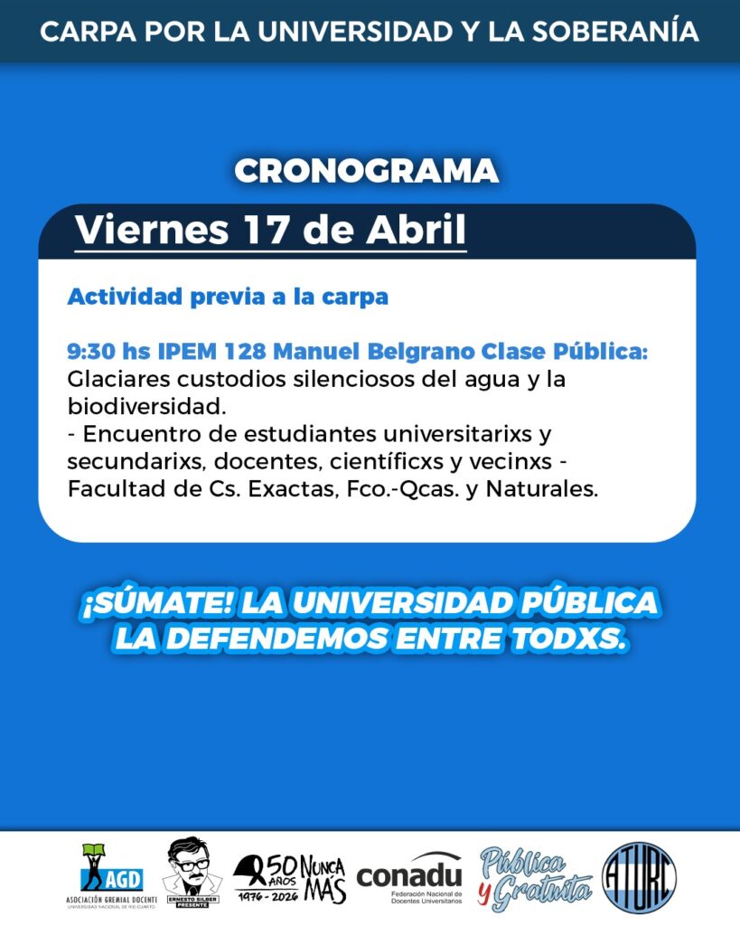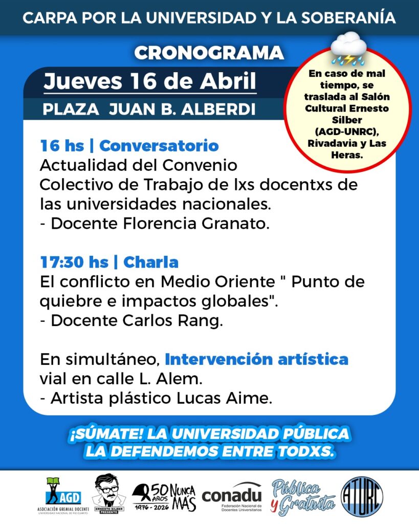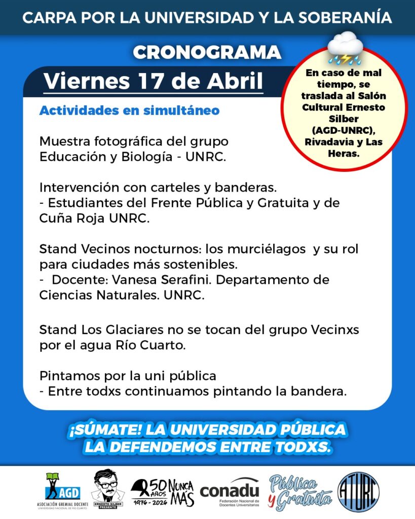 📍 El 16 y 17 de abril la Carpa llega a Río Cuarto. Te invitamos a acercarte y participar porque a la universidad pública la defendemos entre todxs.