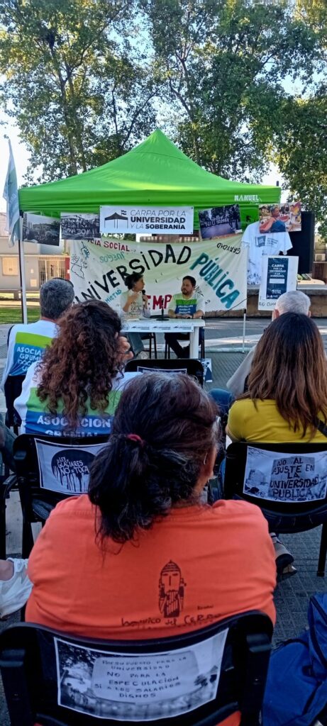 En la primera jornada en la Carpa continuamos dando visibilidad a la decisión deliberada del gobierno de Javier Milei de desfinanciar y asfixiar las universidades públicas. Al no ejecutar la Ley de Financiamiento Universitario, tal como se lo ordenó la Justicia, el gobierno nacional pone en riesgo el derecho de millones de argentinxs de acceder a la universidad pública, gratuita y de calidad.