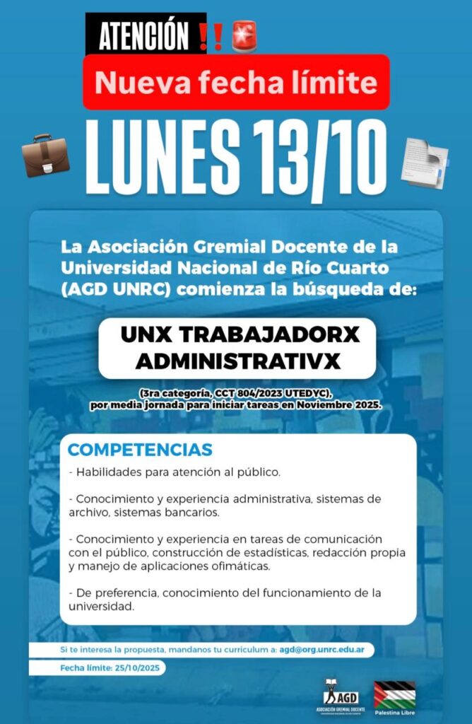Cierre de la convocatoria trabajadorx administrativx AGD 13/10