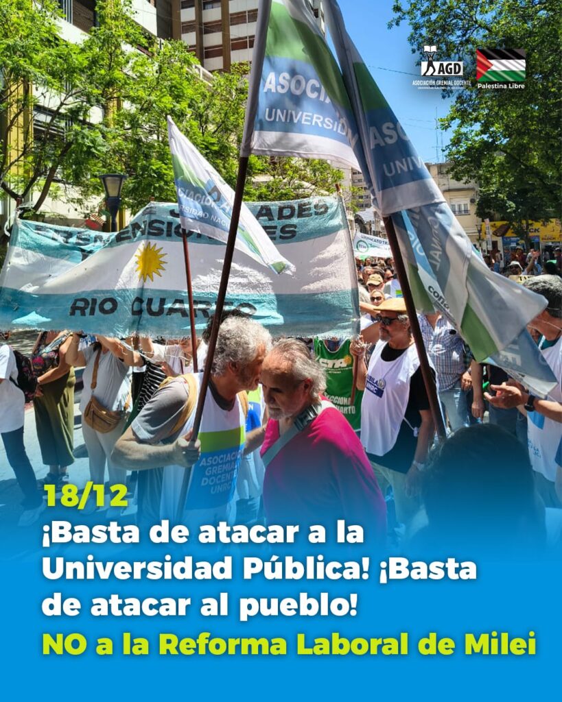 18/12 Día histórico en defensa de nuestros derechos AGD-UNRC adhiere e invita a participar